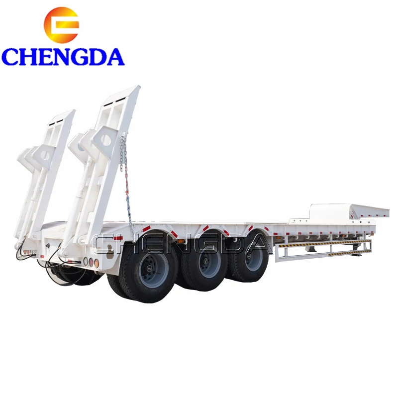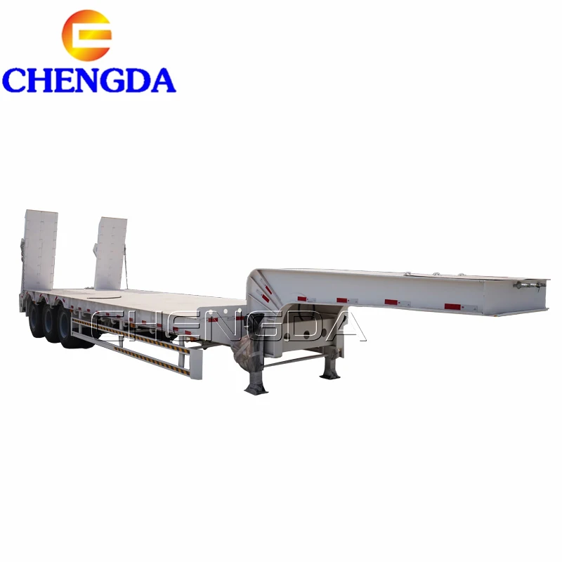 Use: Truck Trailer Type: Semi-Trailer Material: Steel Certification: CCC ISO WMI Size: 13000*3000*1650mm OE NO.: low bed truck trailer Max Payload: 60T Place of Origin: Shandong, China Brand Name: Chengda low bed truck trailer Trailer Type: Truck Trailer Product Name: 50 ton lowboy trailers for export 3 axle lowbed trailers for sale Working Deck: 9000x3000x1250mm Axle Brand: 13TON Axle FUWA Brand Suspension: Mechanical Suspension Tire: 11.00R20 Landing Gear: Heavy Duty Landing Gear King pin: 2"(50mm)or3.5"(90mm) Loading capacity: 40T-80T